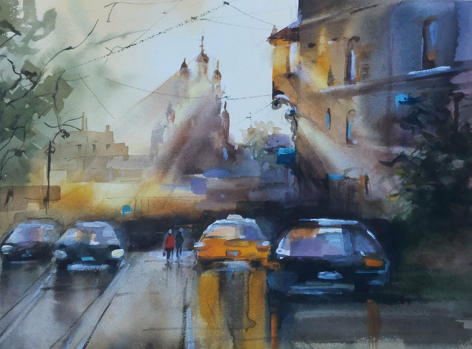 Rīts, akvarelis / kokvilnas papīrs, 45 x 35 cm, 130 eiro -