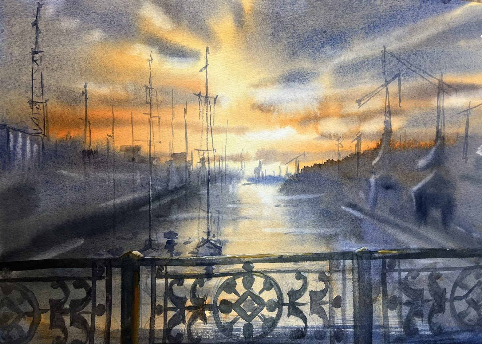 Liepājas osta, akvarelis / papīrs, 40x30 cm, 130 eiro -