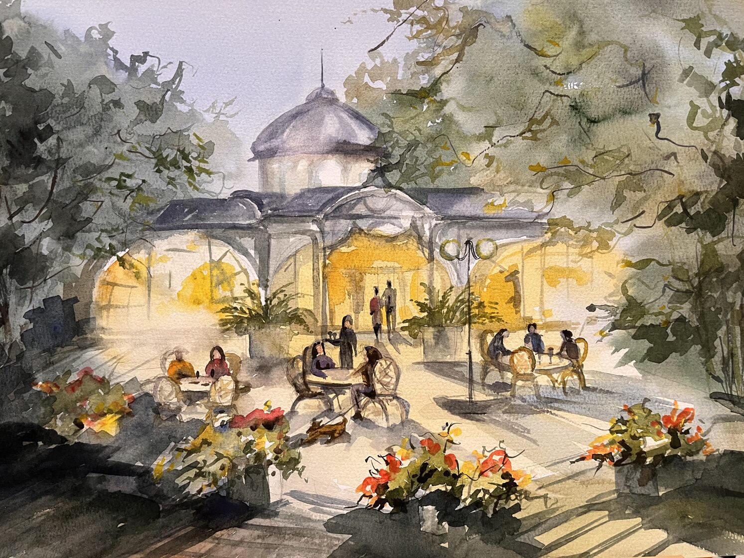 Romantic Liepaja, watercolor / paper, 40x30 cm, framed 50x40 cm,, 130 euro -