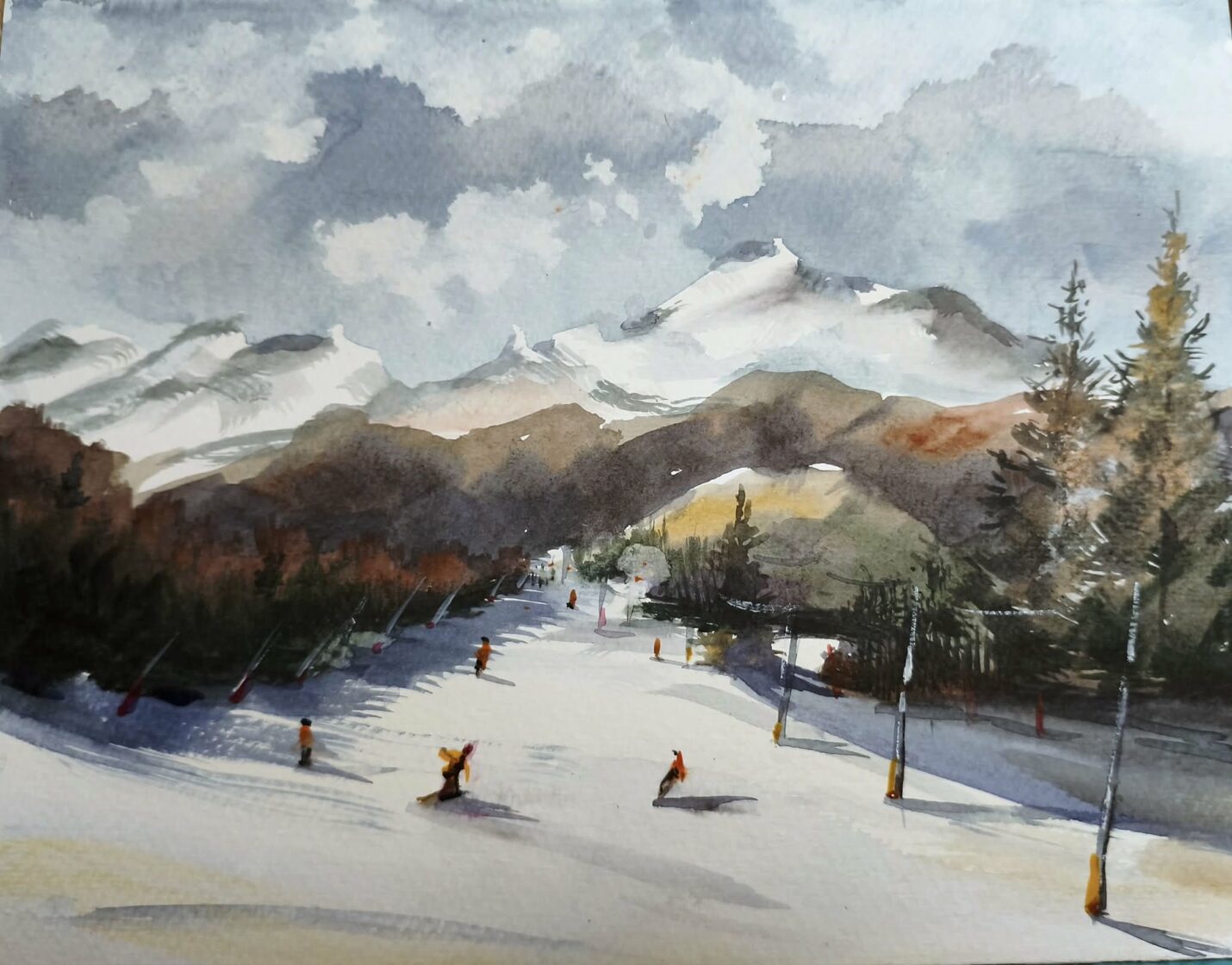 Winter joy, watercolor / paper, 30 x 23 cm, 50 euro -