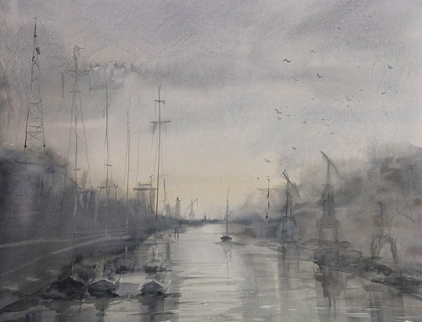 Liepaja, watercolor / cotton paper, 45 x 35 cm, 130 eiro -